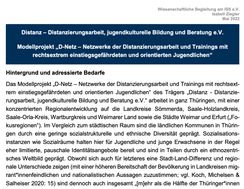 Evaluation des Wirkmodells von Distanz e. V. durch das Institut für Sozialarbeit und Sozialpädagogik (ISS), Isabell Ziegler, Mai 2022